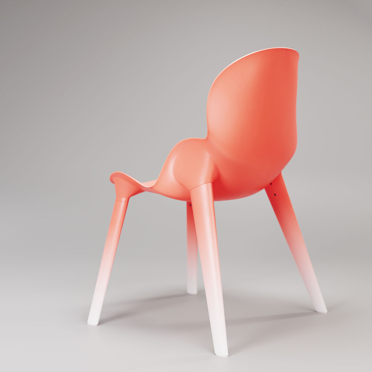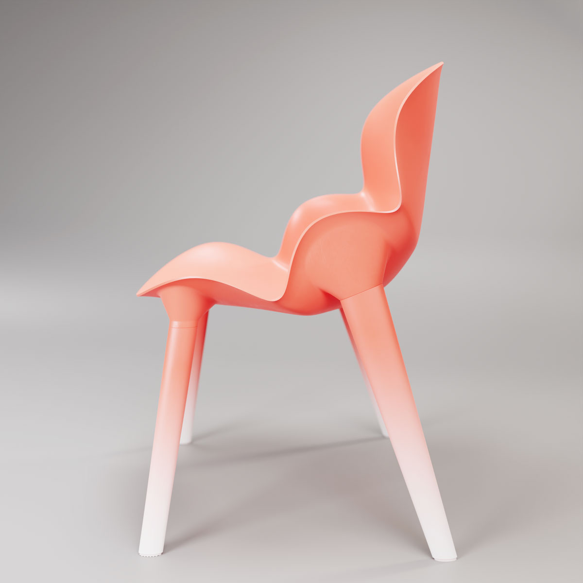 La chaise Three, réalisée en injection de polyamide, synthétise l'inspiration d'une feuille de chêne modelée sous la forme d'une chaise qui illustre une vision personnelle et contemporaine de l'art nouveau.